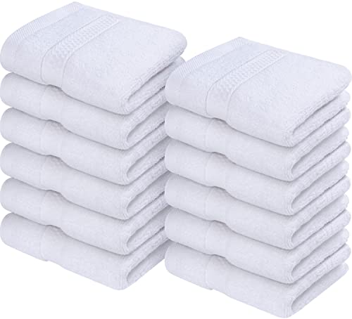 Utopia Towels Cotton Washcloths Set - 100% Ring Spun Cotton, Premium Quality Flannel Face Cloths, Highly Absorbent and Soft Feel Fingertip Towels (12 Pack, White)