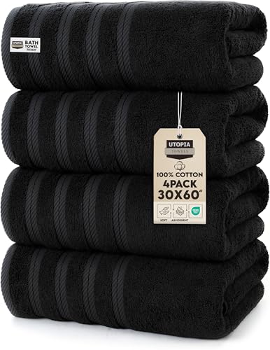 Utopia Towels 4 Pack Bath Towels Set, (27 x 54 Inches) 100% Ring Spun Cotton, Quick Dry, Highly Absorbent, Soft Feel Towels, Perfect for Daily Use (Black)