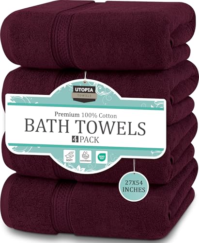 Utopia Towels - 4 Piece Bath Towels Set (69 x 137 CM) - Premium 100% Ring Spun Cotton - Quick Dry, Highly Absorbent, Soft Feel Towels, Perfect for Daily Use (Burgundy)