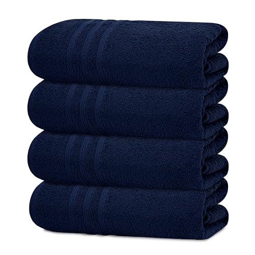 Tens Towels 4 Pc Navy Bath Towels Set 100% Cotton Bathroom Towels 27 x 54 Inches Perfect Everyday Light Weight Quick Dry Towels for Bathroom