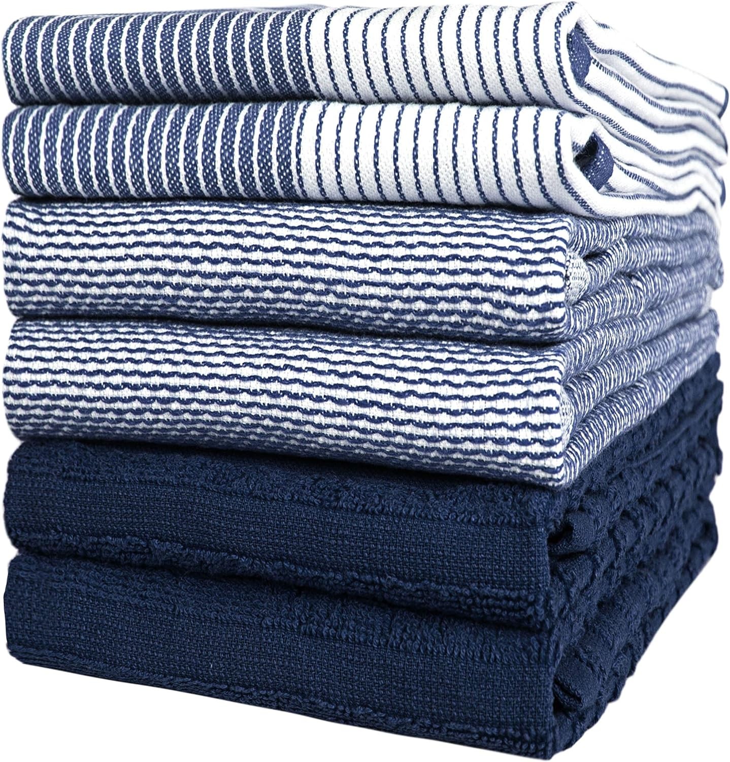 Bumble Kitchen Hand Dish Tea Towels – Bulk Set of 6 – Luxe, Soft, Durable Ring Spun Cotton with 3 Different Textures – Extra Large 20" x 28" / 50 x 70 cm Size (Blue)