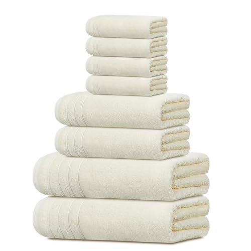 Tens Towels Pack of 8 Towels Set, 2 Extra Large Bath, 2 Hand, 4 Washcloths, 100% Cotton, Lighter Weight, Quicker to Dry, Super Absorbent, Perfect for Bathroom, Cream