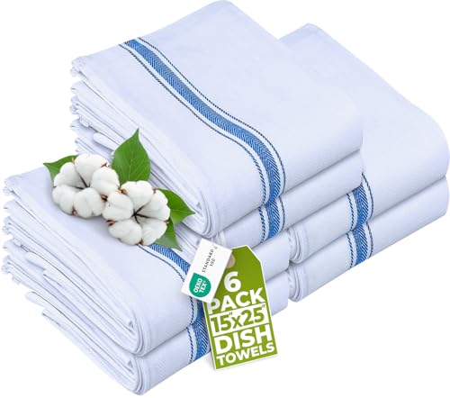 Utopia Towels - Dish Towel, 15x25 Inches, 100% Ring Spun Cotton Super Absorbent Linen Kitchen Towels, Soft Reusable Cleaning Bar and Tea Towels Set (6 Pack, Blue)
