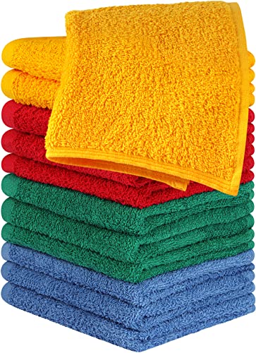 Utopia Towels Cotton Washcloths Set - 100% Ring Spun Cotton, Flannel Face Cloths, Highly Absorbent and Soft Feel Fingertip (12 Pack, Electric Blue, Hunter Green, Red, Mustard) (UT1050)