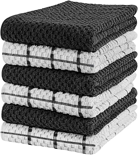 Premium Kitchen Towels (20”x 28”/ 50 x 70 cm 6 Pack) – Large Cotton Kitchen Hand Towels – Flat & Terry Towel – Highly Absorbent Tea Towels Set with Hanging Loop (Grey)