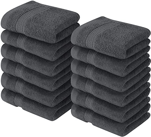 Utopia Towels Cotton Washcloths Set - 100% Ring Spun Cotton, Premium Quality Flannel Face Cloths, Highly Absorbent and Soft Feel Fingertip Towels (12 Pack, Grey)