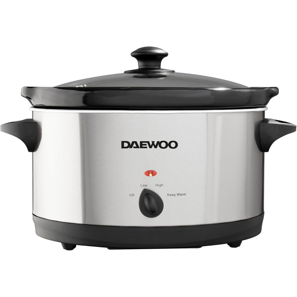 Daewoo 1.5L Compact Slow Cooker Silver Stainless Steel 3 Heat Settings Lid & Pot