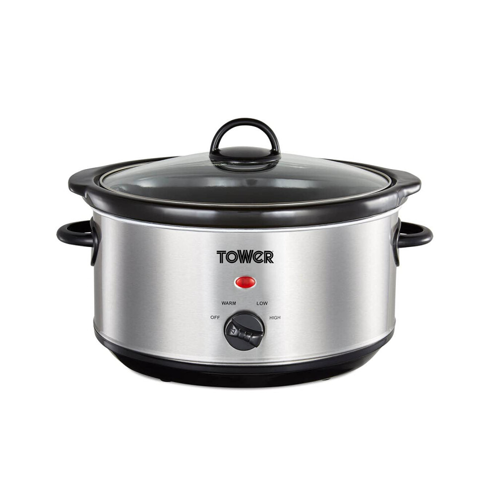 TOWER T16040Y 6.5 LITRE SLOW COOKER WITH 3 HEAT SETTINGS IN STAINLESS STEEL