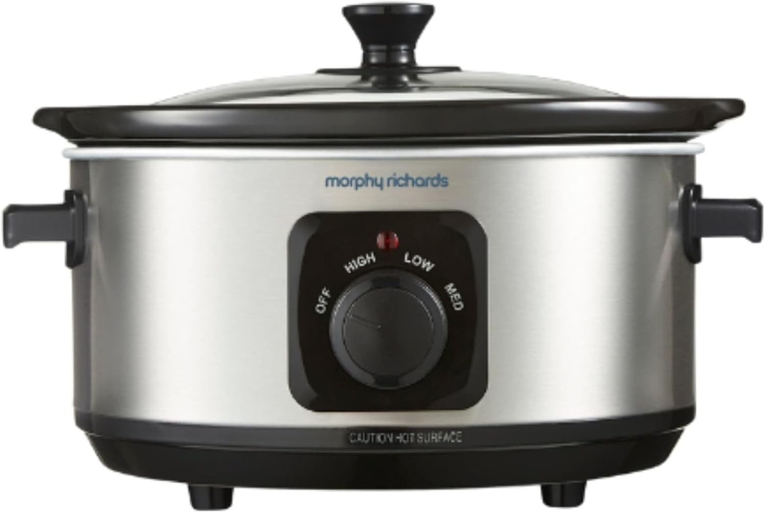 Morphy Richards 3.5L Stainless Steel Slow Cooker, 3 Heat Settings, One Pot Solu