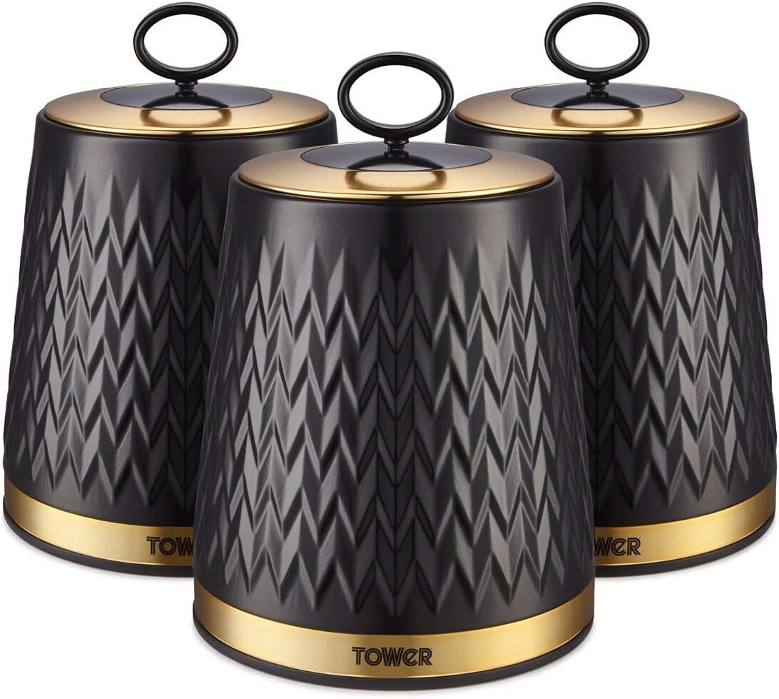 Tower T826091BLK Empire Set of 3 Storage Canisters for Tea Coffee Sugar, 1.3L,