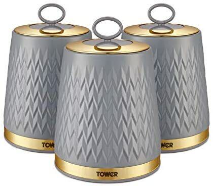 Tower T826091GRY Empire Set of 3 Canisters, a Coffee Sugar, 1.3L each, Brand New