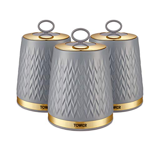Tower T826091GRY Empire Set of 3 Storage Canisters for Tea Coffee Sugar, 1.3L,