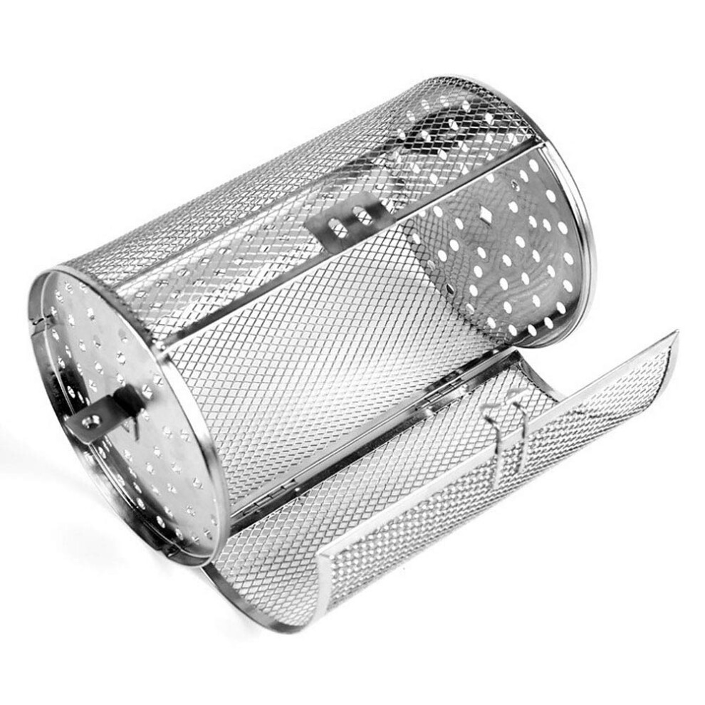 Rotisserie Basket for Tower Air Fryer Stainless Steel Grill Roaster Drum Oven Round Rack Cage 360° Rotating Chip Basket Air Fryer Basket Accessories for Peanut Coffee Bean Nuts BBQ Walnut 12x18cm
