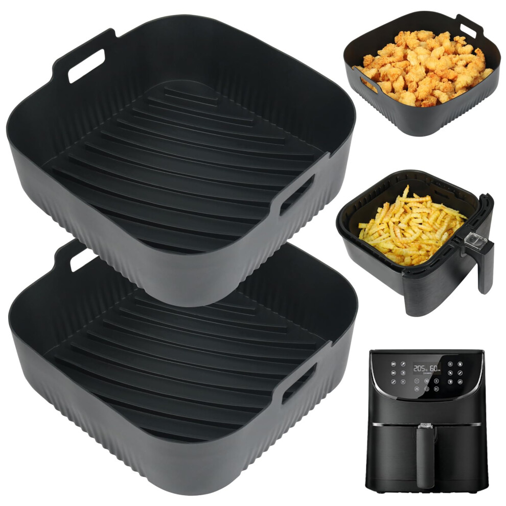 Rectangular Air Fryer Trays Silicone BPA-Free Oven Dishwasher Safe Black 2Pcs