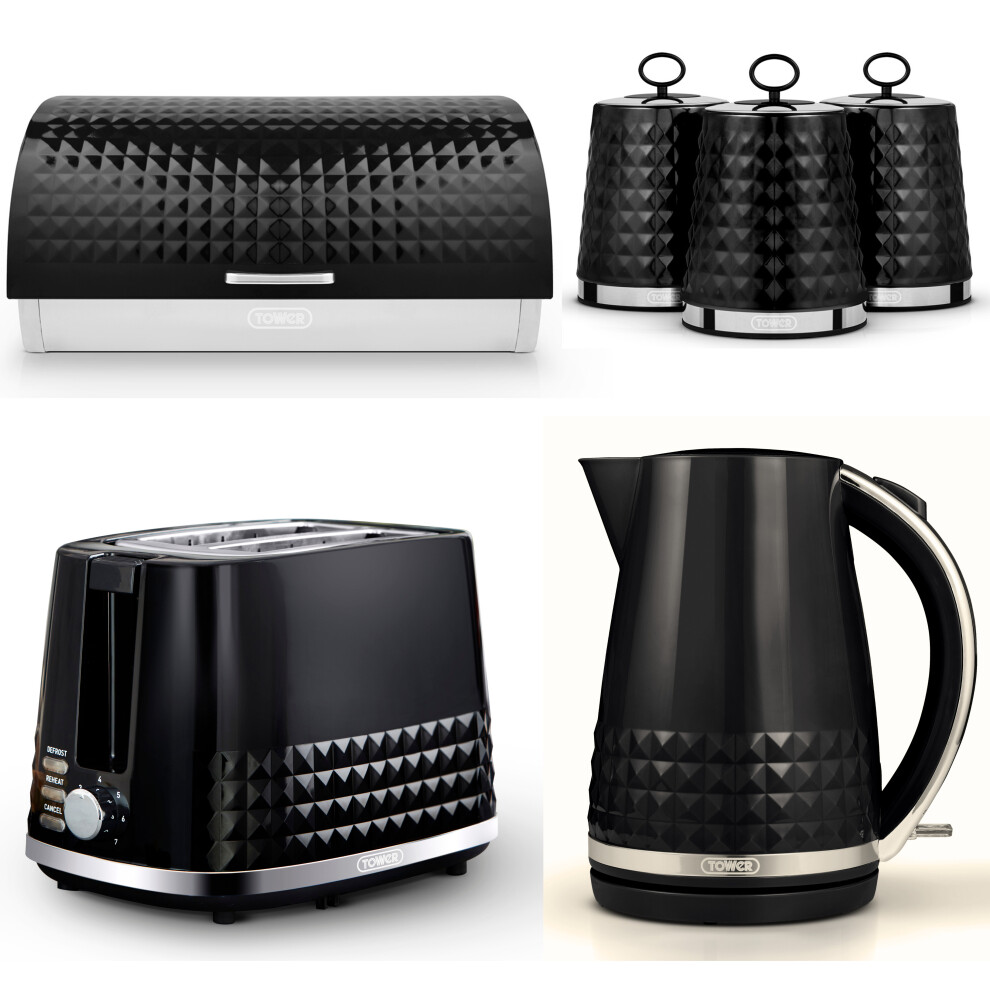 Tower Sonar Black Kettle Toaster Bread Bin Canisters Matching Kitchen Set