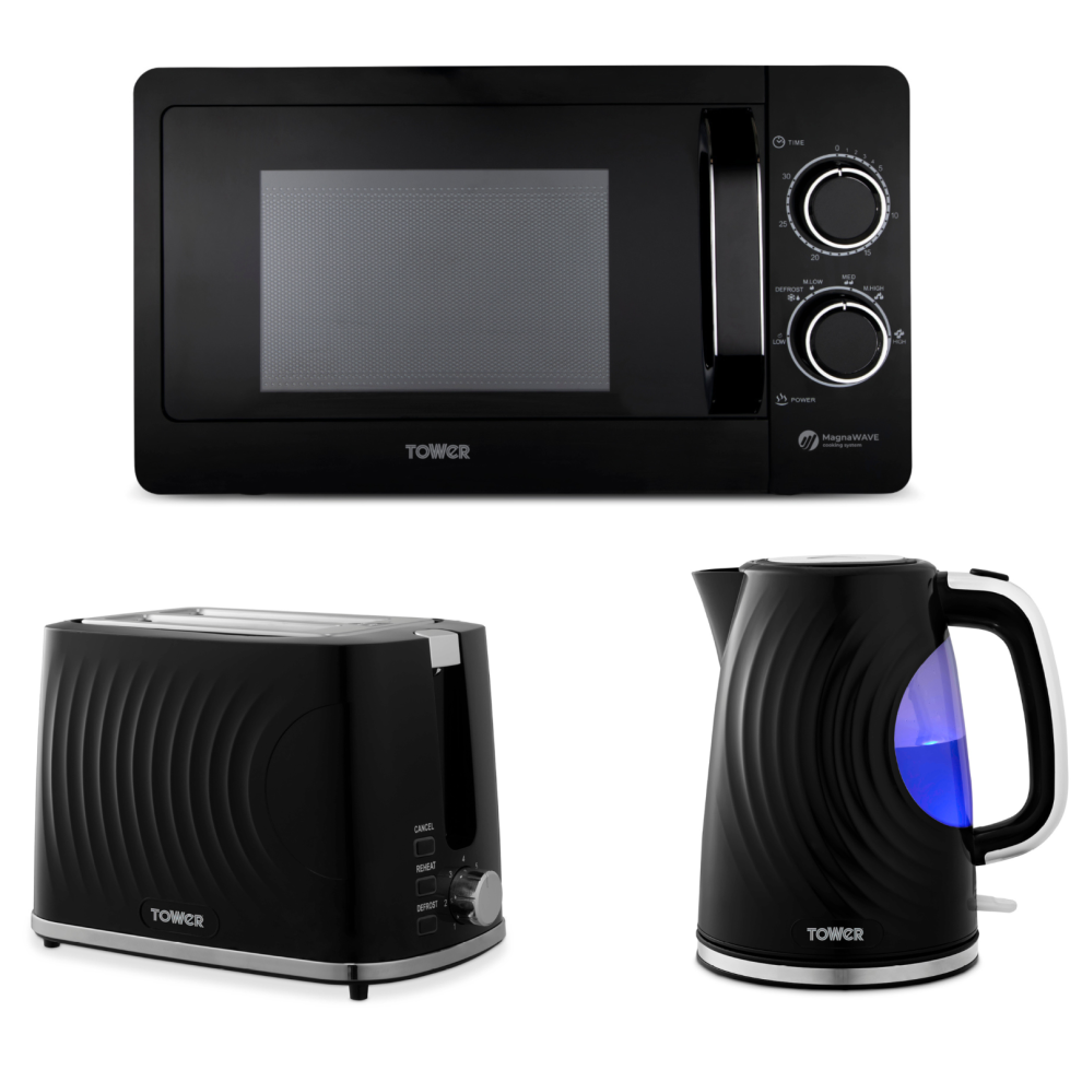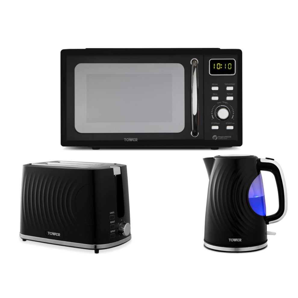 Tower Cavaletto Black Jug Kettle 4 Slice Toaster Microwave Kitchen Set