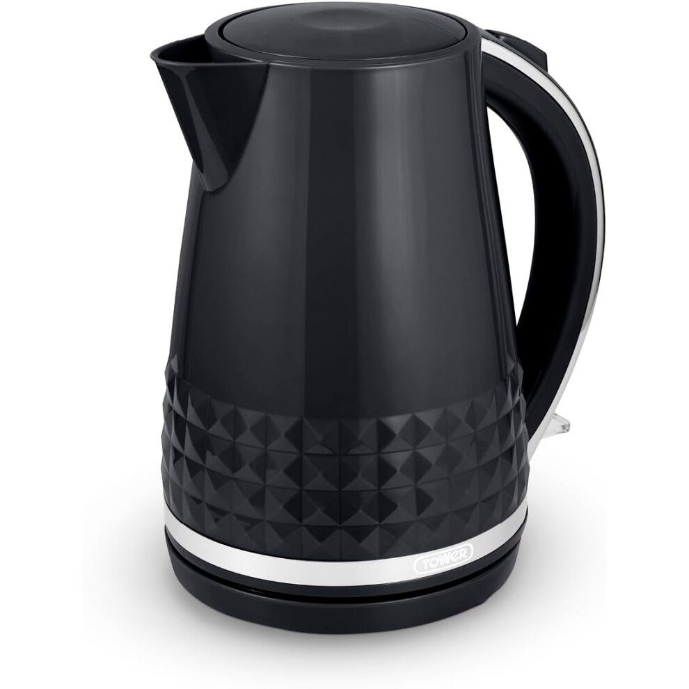 Tower Solitaire Kettle, 1.5L, Cord Storage, 3KW, 3D Diamond Textured, Black & Chrome Accents - T10075BLK