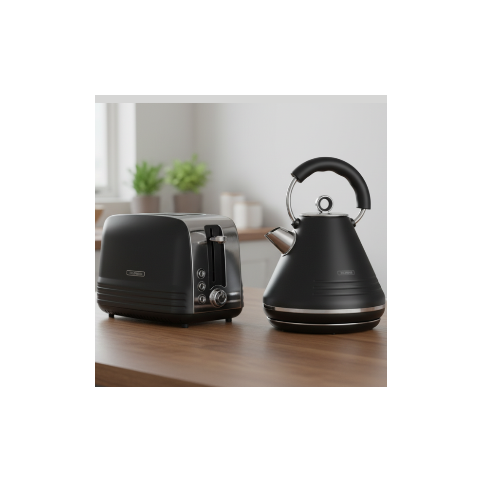 Tower Cavaletto Black Jug Kettle and 4 Slice Toaster Matching Kitchen Set
