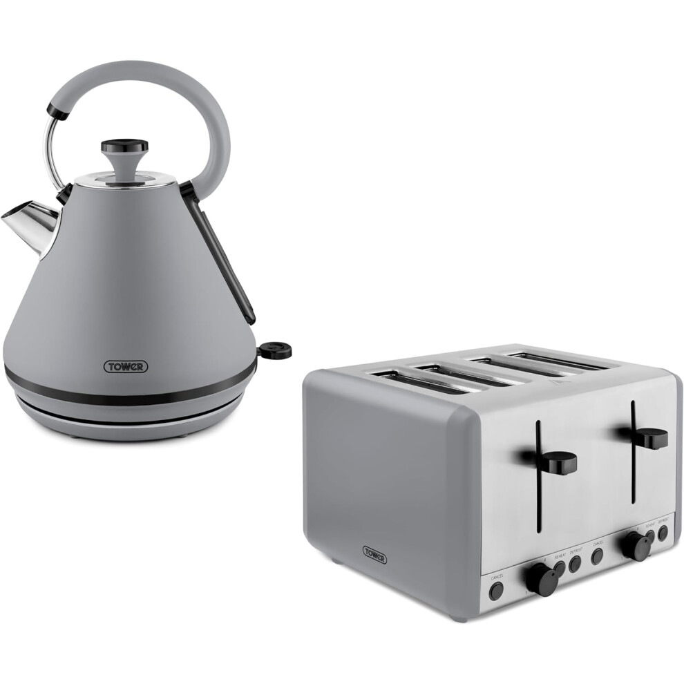 Tower Sera Pyramid Kettle & 4 Slice Toaster Matching Set in Grey with Black Trim