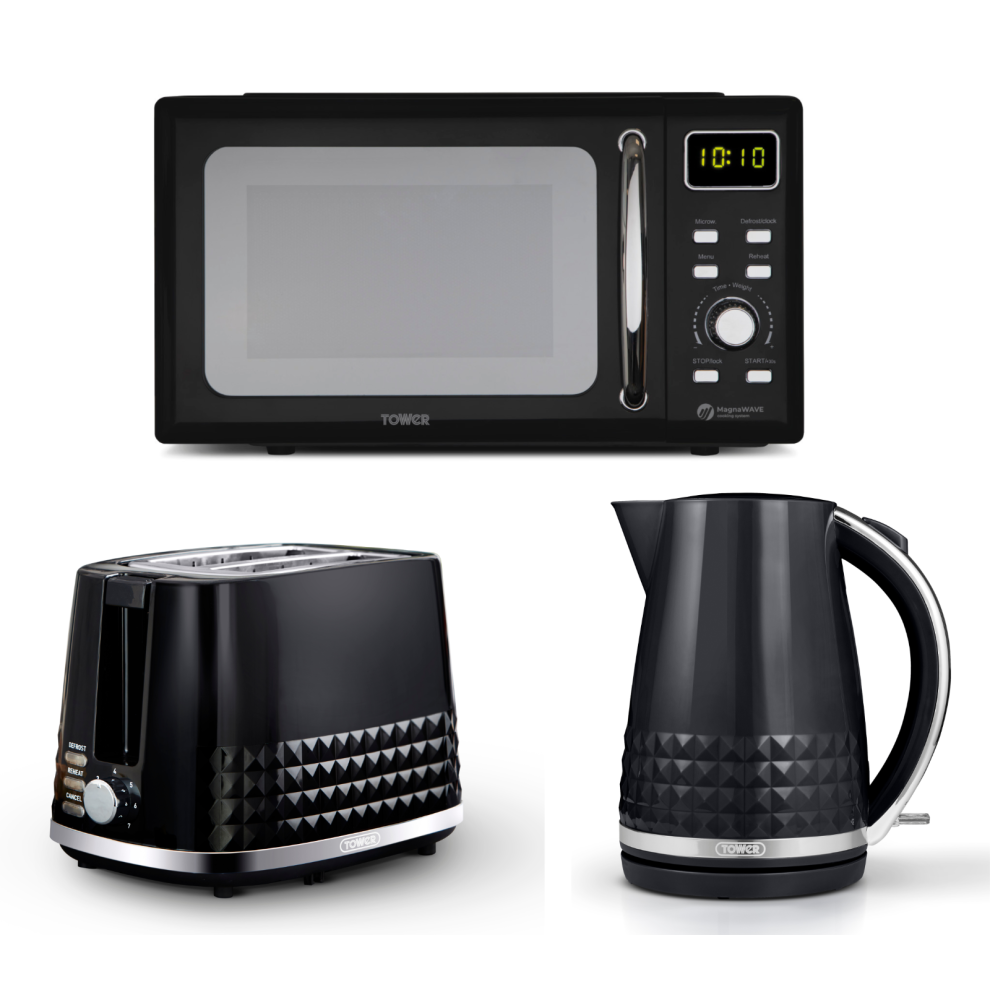 Tower Solitaire Black Kettle 2 Slice Toaster & Digital Microwave Set