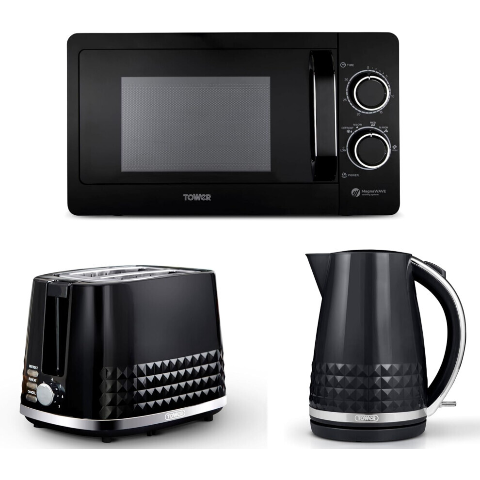 Tower Solitaire Black Kettle 2 Slice Toaster & T24042BLK 20L Microwave