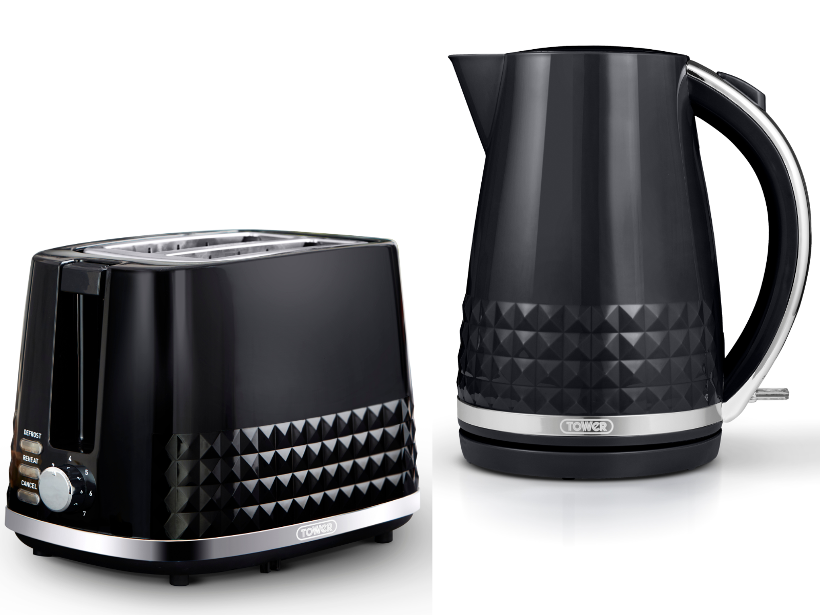 Tower Kitchen Set, 1.7L Pyramid Kettle & 4 Slice Toaster, Black, T10079BLK, T20086BLK