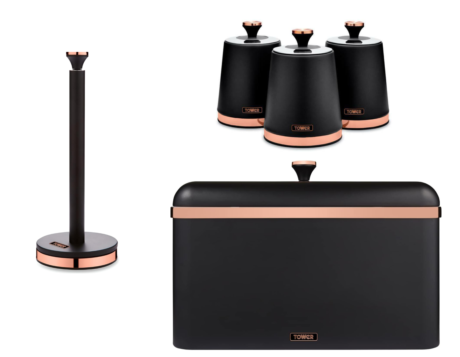 Tower Cavaletto Black Bread Bin Canisters & Kitchen Roll Holder Kitchen Storage