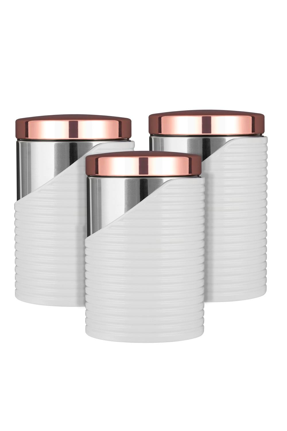 Tower T826207WHT Set of 3 Canisters, Stainless Steel, White