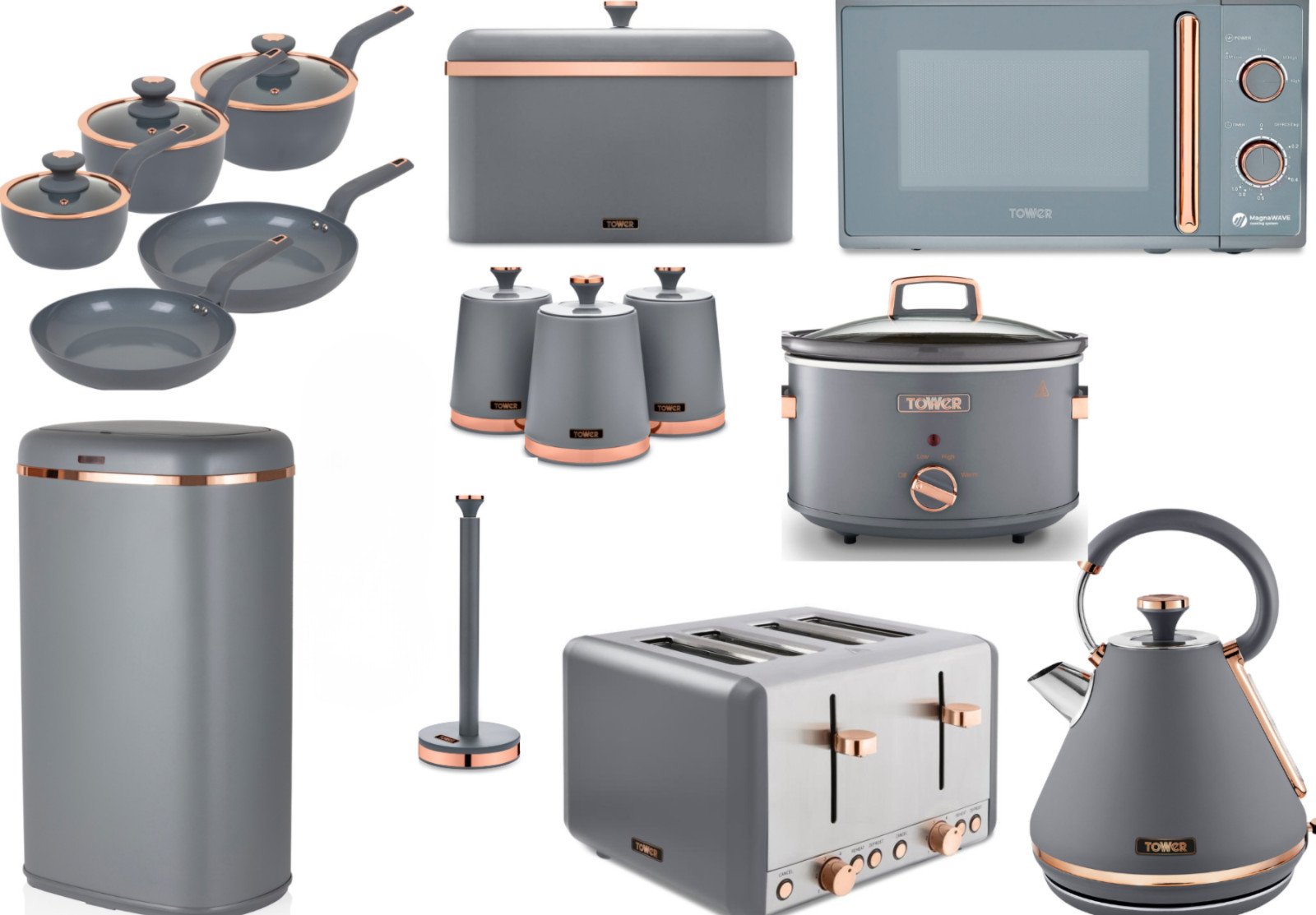 Tower Cavaletto Complete Kitchen Set of 15 Items Grey & Rose Gold 3 Yr Guarantee