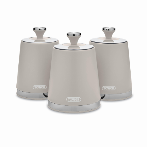 Tower T826171CHA Belle Set of 3 Canisters, Tea/Coffee/Sugar Storage, Chantilly Cream