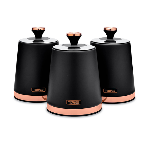 Tower T826131BLK Cavaletto Set of 3 Storage Canisters, Black/Rose Gold