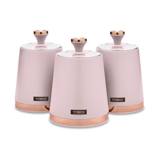 Tower T826131PNK Cavaletto Set of 3 Storage Canisters for Tea/Coffee/Sugar, Steel, Marshmallow Pink and Rose Gold, One Size