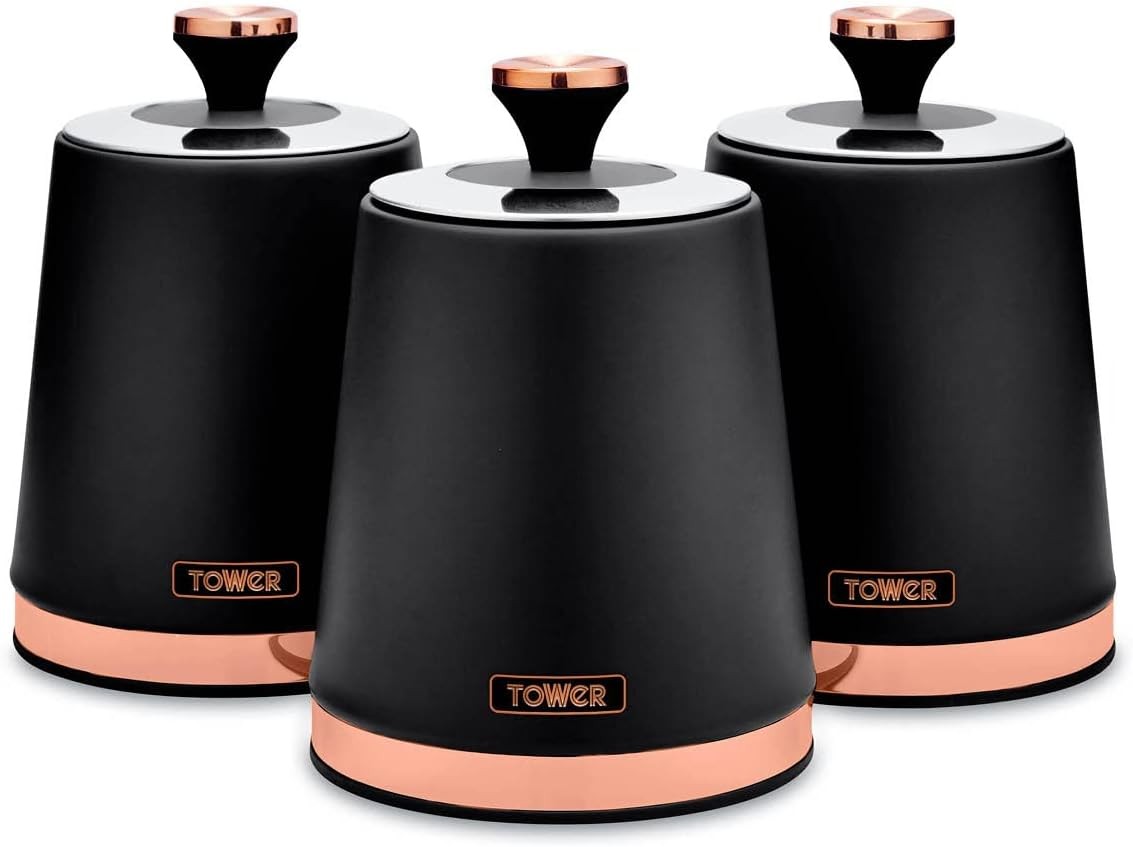 Tower T826131BLK Cavaletto Set of 3 Storage Canisters, Black/Rose Gold