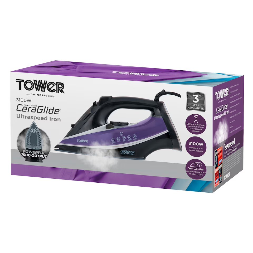 Tower T22013PR CeraGlide Ultra Speed Steam Iron 3100W Purple
