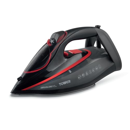 Tower T22032RED Steam Iron with Ceraglide XL Ceramic Soleplate, Adjustable Temperature Control, Anti-Drip & Anti-Calc, Auto Shut Off 350ml Water Tank, 3100W, Red & Black
