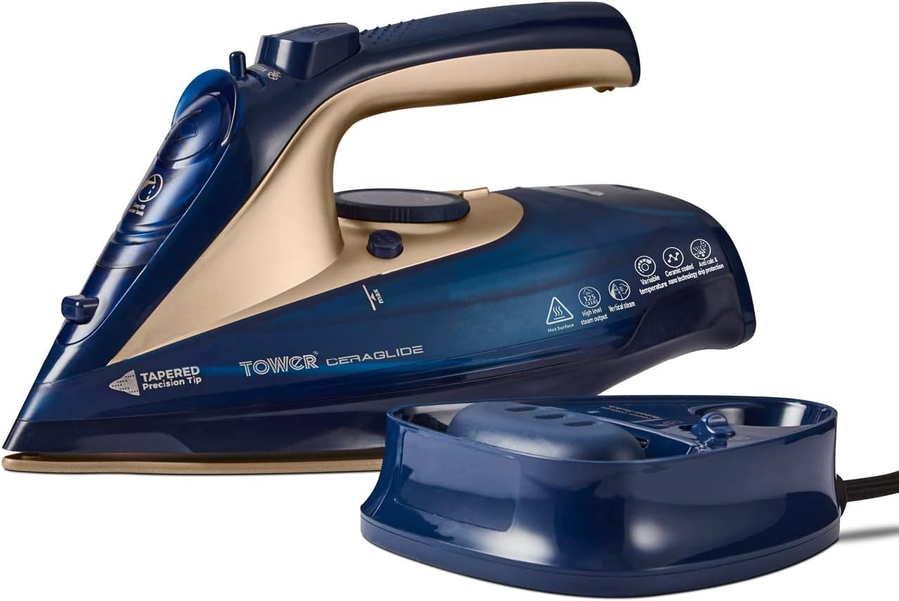 Tower T22008BLG Ceraglide Cordless Steam Iron with Ceramic Soleplate and Variabl