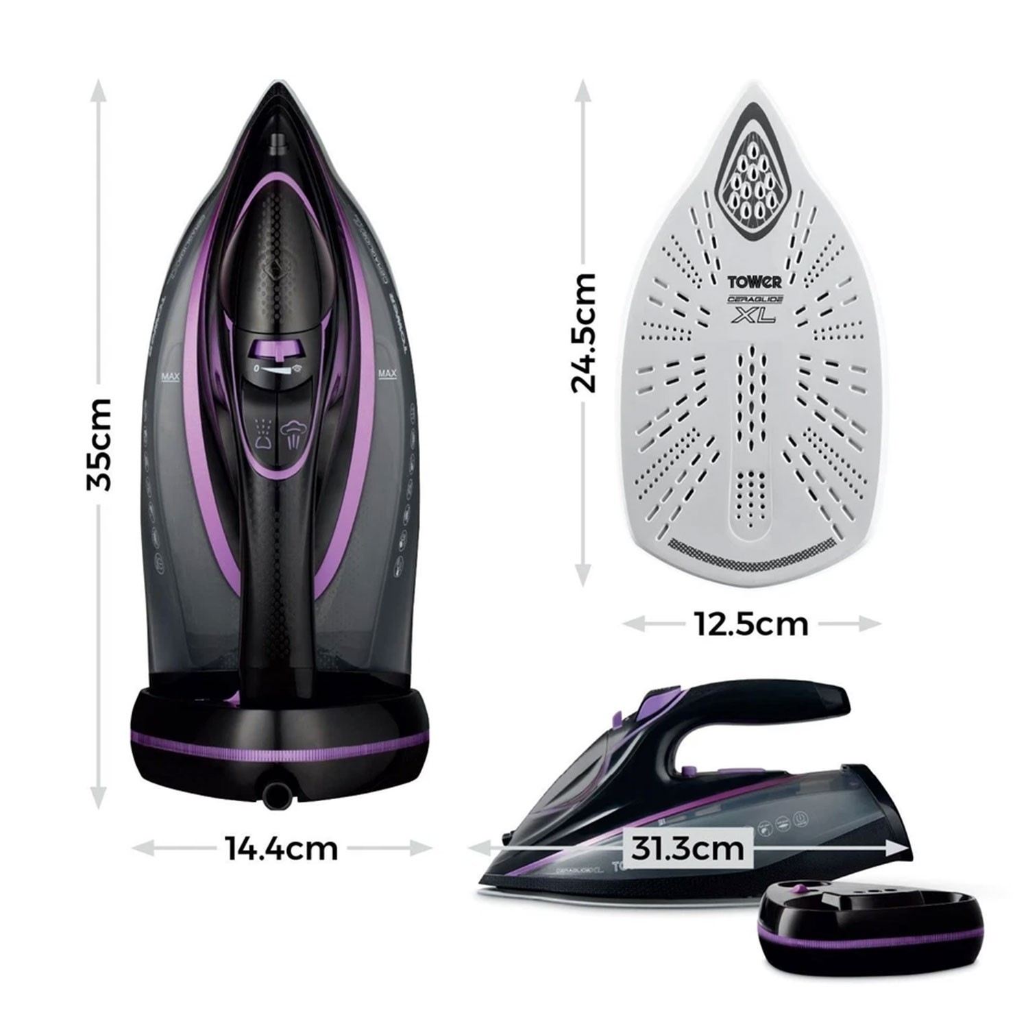 Tower T22008RG CeraGlide Cordless Steam Iron with Ceramic Soleplate, Black in Purple