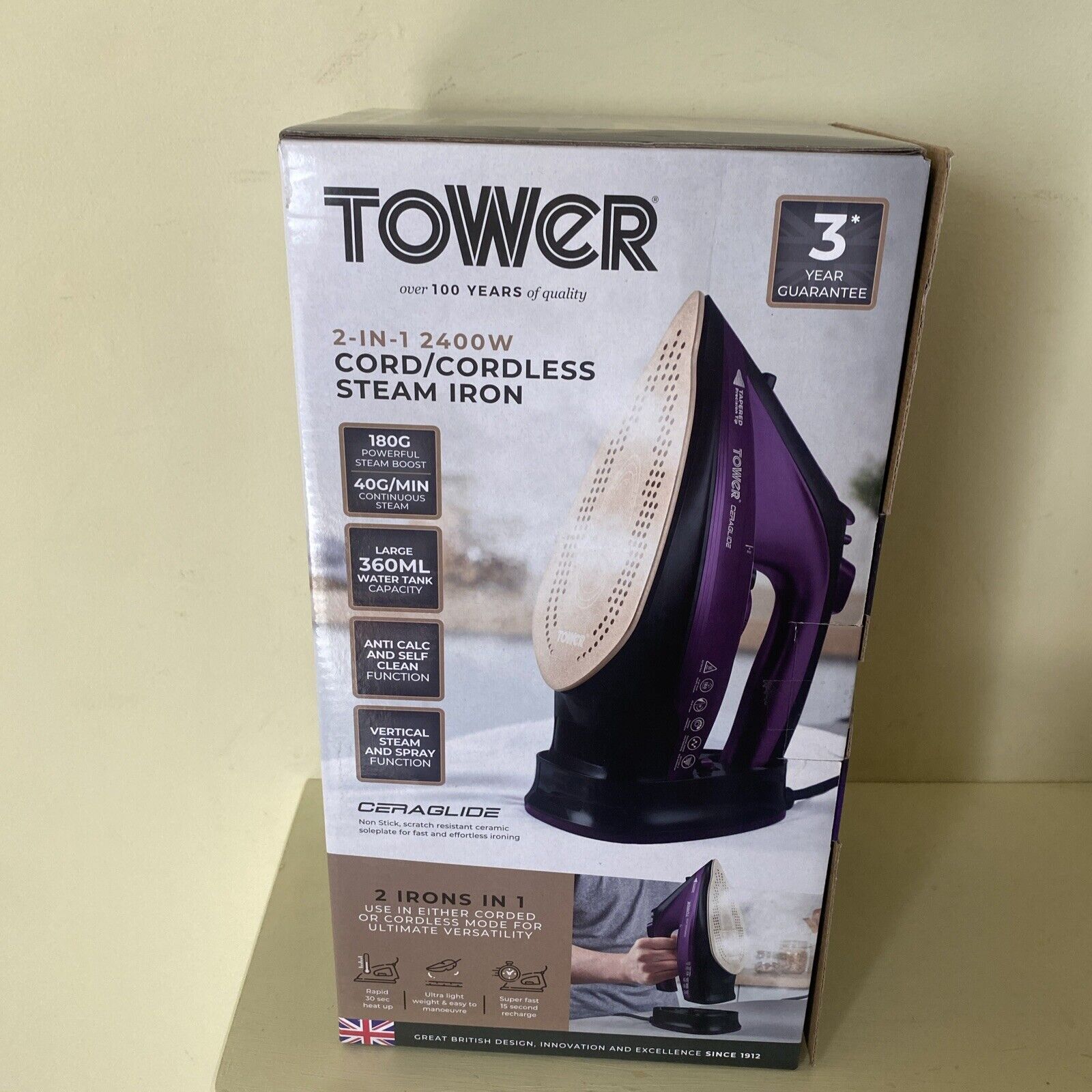 T22008BL Tower CeraGlide 2 in 1 Cord/Cordless Steam Iron 180G Steam Boost 360ml