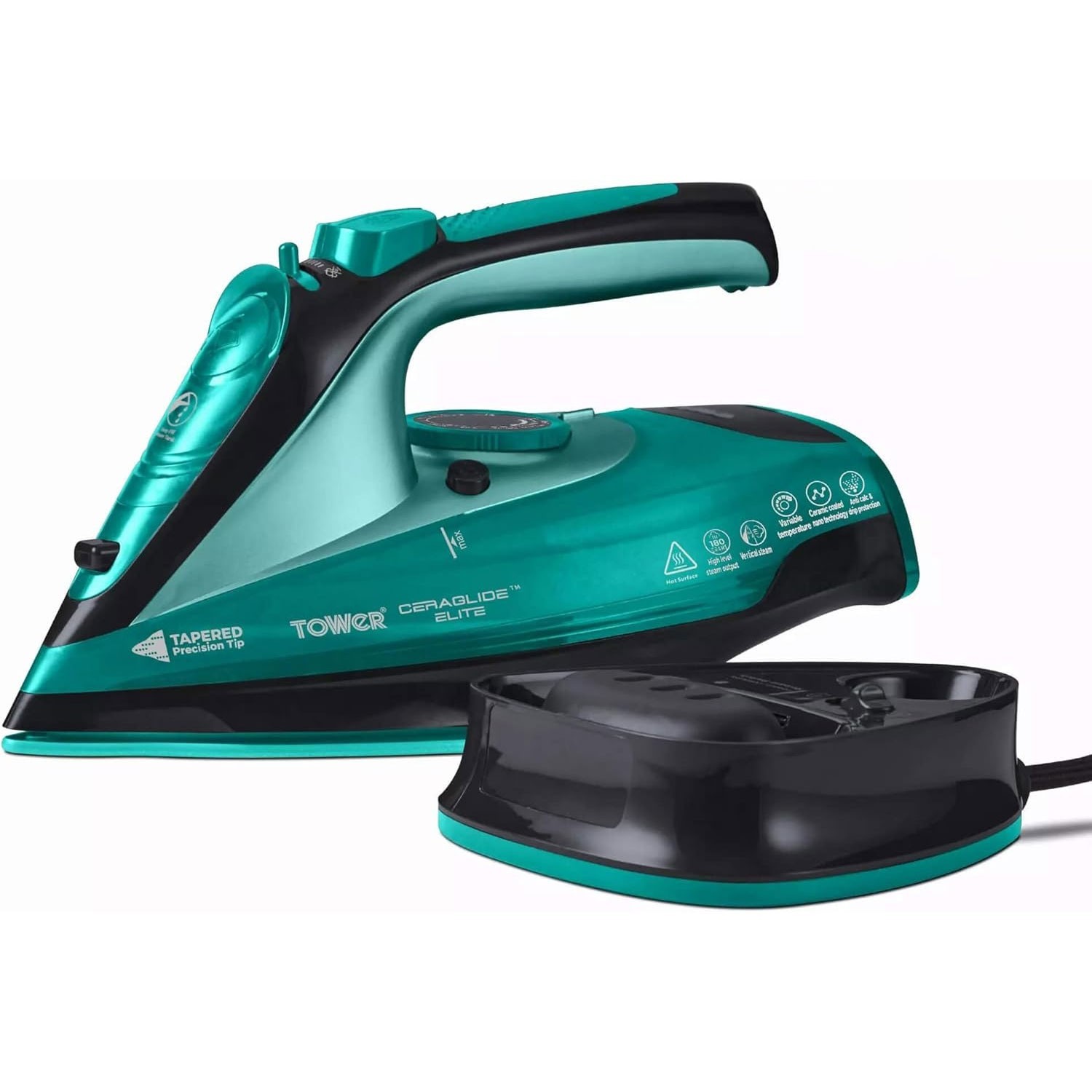 Tower Ceraglide Elite Cordless Steam Iron 2400W Ceramic Teal UK