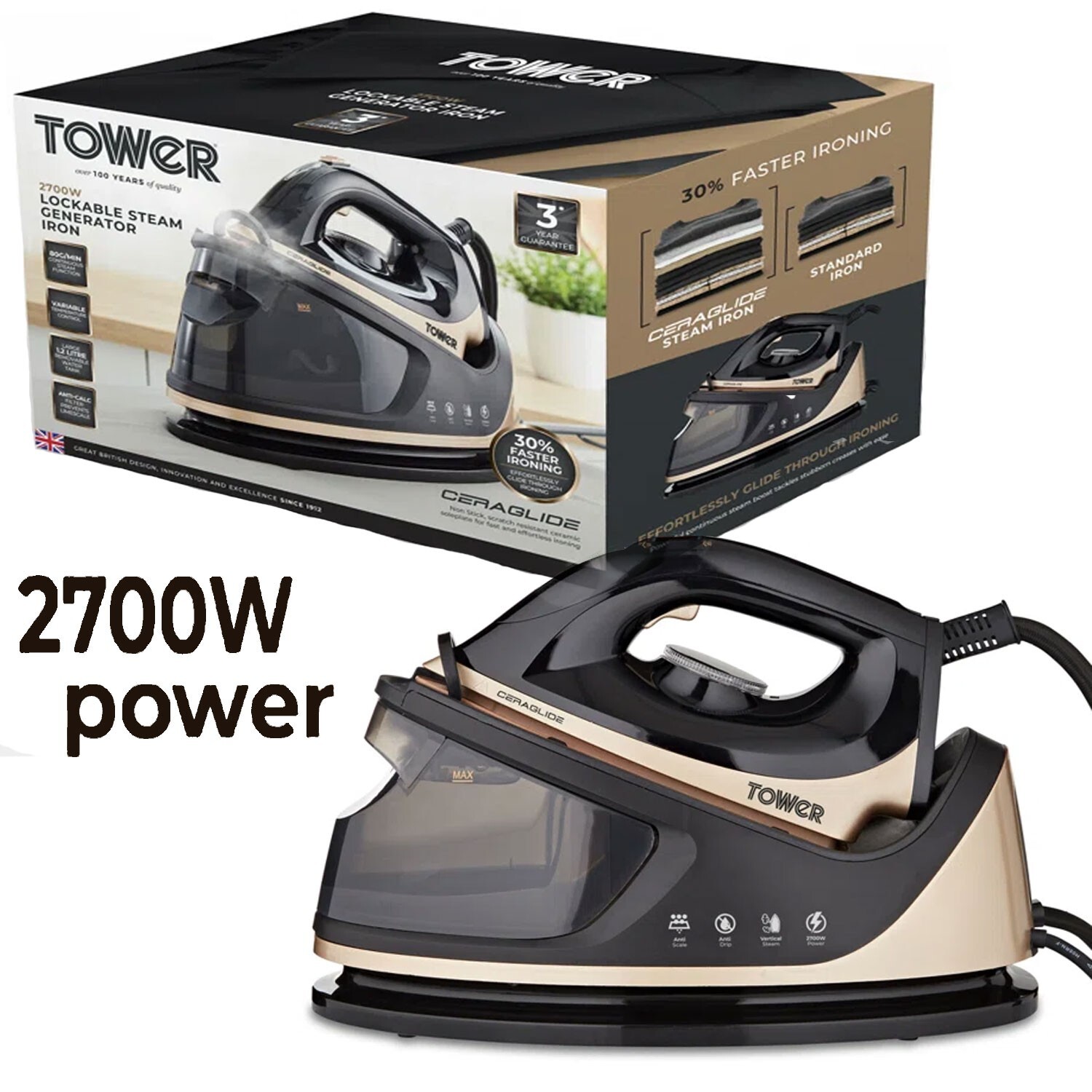 Tower T22023GLD Ceraglide Steam Generator Iron, 3 Bar Pressure, 2700W, 1.2 Litre