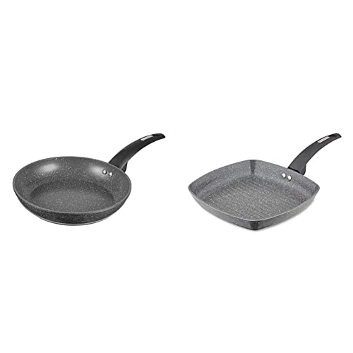 Tower Cerastone T81232 Forged Frying Pan with Non-Stick Coating and Soft Touch Handles, 24 cm & T80336 Cerastone Induction Grill Pan, Non Stick Ceramic Coating, Easy to Clean