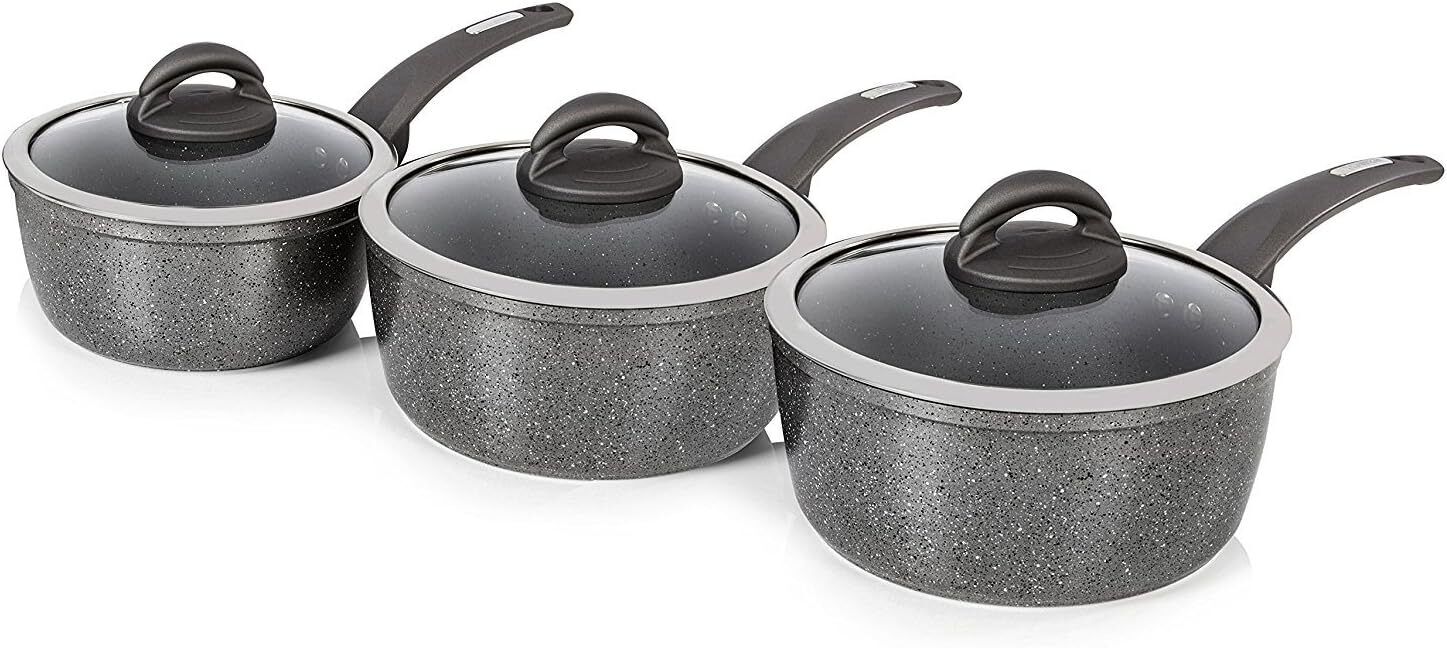 Tower T81212 Cerastone Forged 3 Piece Saucepan Set with Non-Stick Coating and S