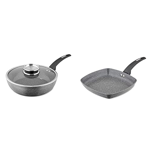 Tower T81202 Cerastone Forged Multi-Pan with Non-Stick Coating and Soft Touch Handles, 28 cm & T80336 Cerastone Induction Grill Pan, Non Stick Ceramic Coating, Easy to Clean