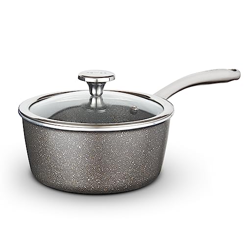 Tower T900215 Cerastone Pro 18cm Forged Aluminium Saucepan with Tempered Glass Lid, Non-Stick Coating, Graphite
