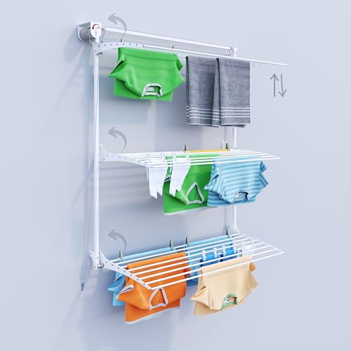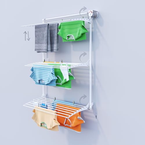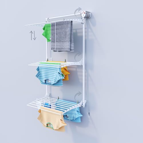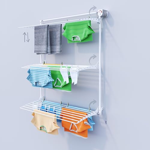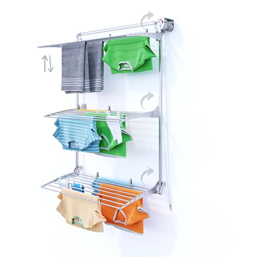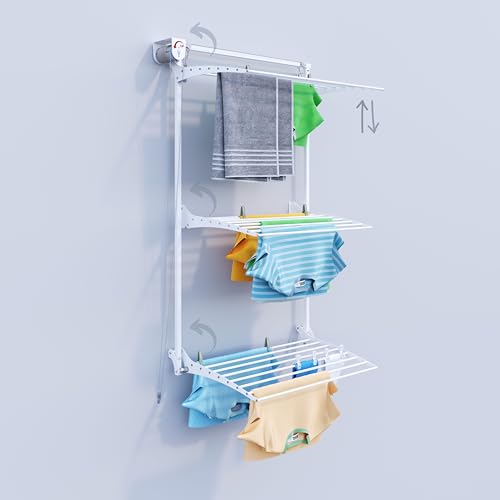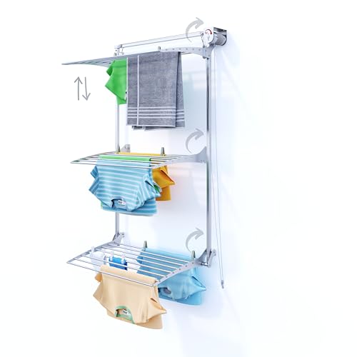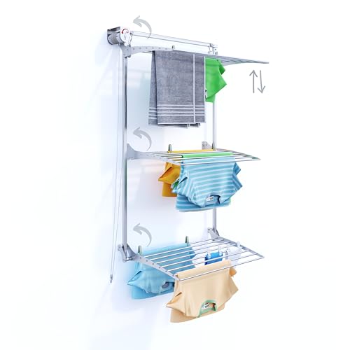 foxydry Tower Wall Mounted Clothes Airer Vertical Wall Mounted Retractable Clothes Drying Rack for Indoor and Outdoor Use (108 x 52 x 137 cm, Right White)
