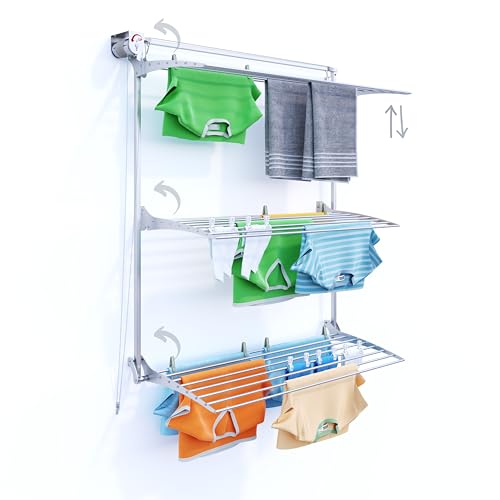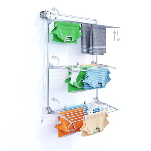 foxydry Tower Wall Mounted Clothes Airer Vertical Wall Mounted Retractable Clothes Drying Rack for Indoor and Outdoor Use (88 x 52 x 137 cm, Right Grey)