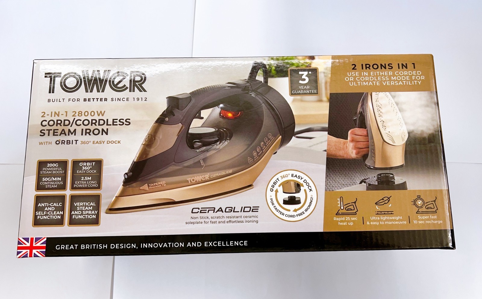 T22008BL Tower CeraGlide 2 in 1 Cord/Cordless Steam Iron 180G Steam Boost 360ml