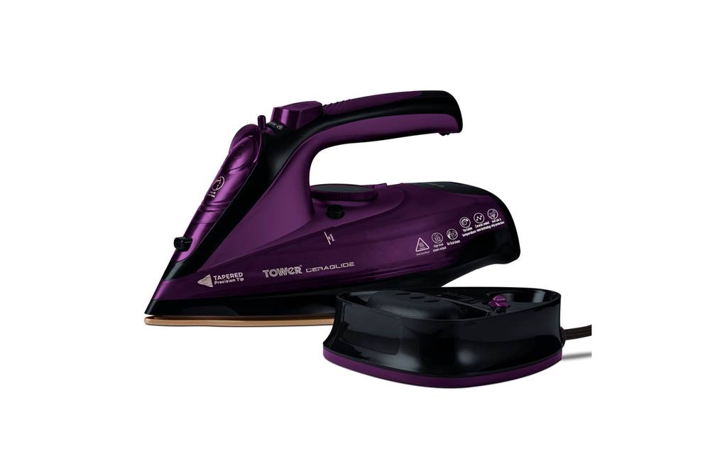 Tower T22008RG CeraGlide Cordless Steam Iron with Ceramic Soleplate, Black in Purple