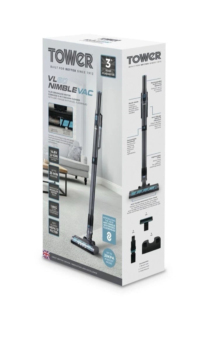 Tower VL60 NimbleVac Cordless Vacuum Cleaner 3-IN-1 Brushless Motor 14.8V - NEW