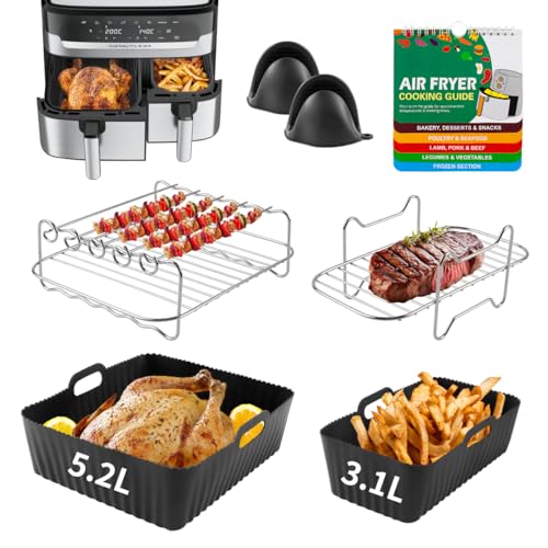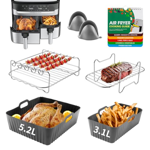 Ninja Air Fryer Accessories, 2Pcs Air Fryer Rack for Grill, Silicone Air Fryer Liners, Air Fryer Paper Liners for Ninja Dual AF300UK AF400UK AF451UK / Tower T17088 Dual Basket Air Fryer 7.6L-9.5L